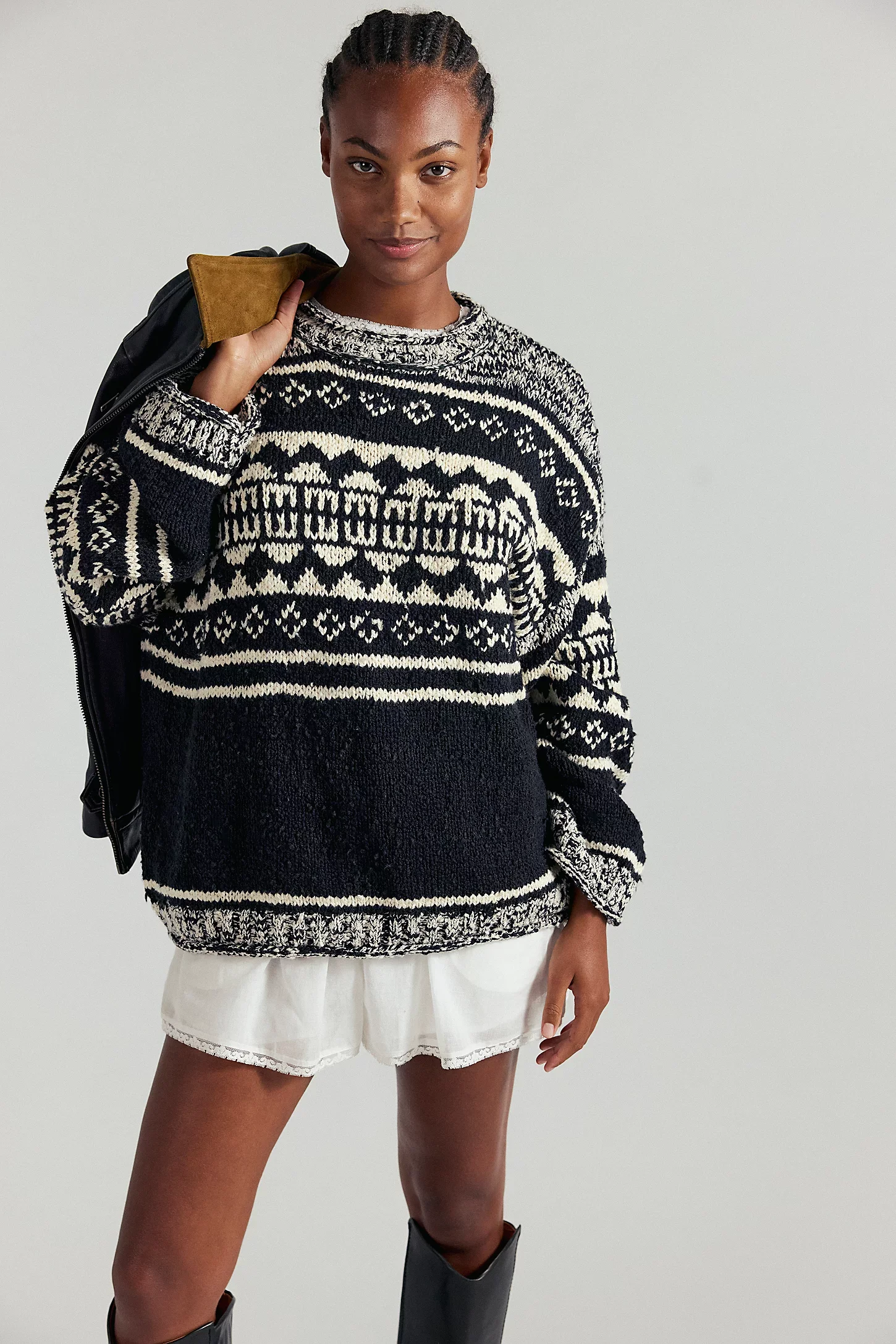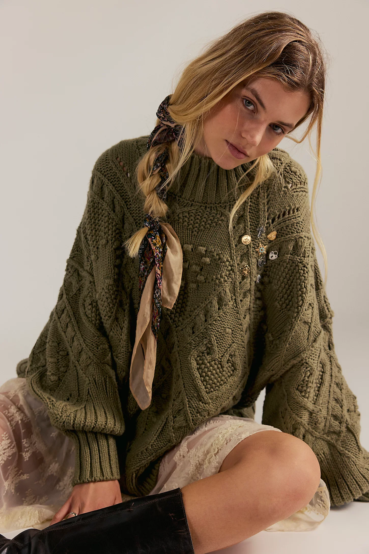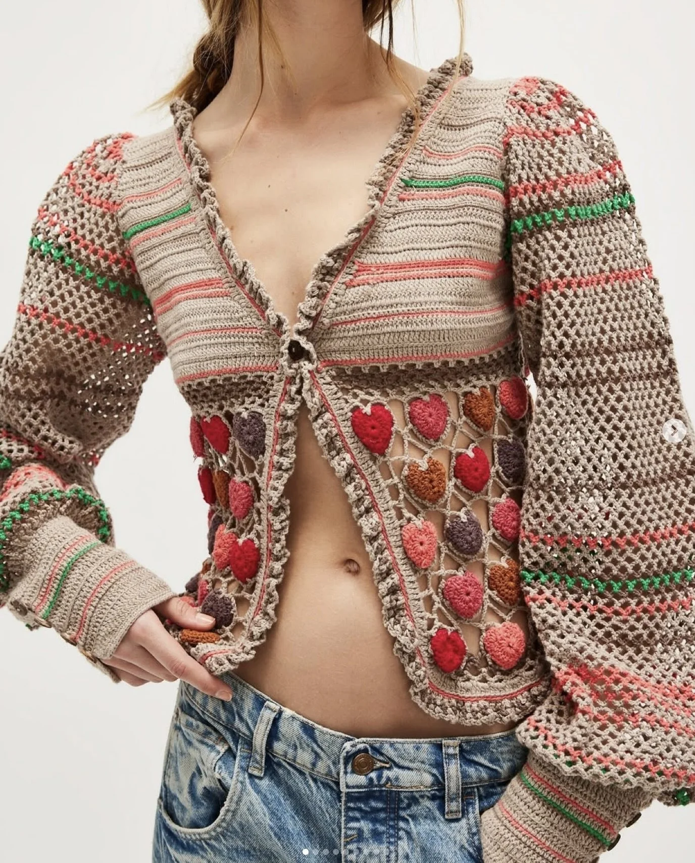 This beautiful style was based on an amazing vintage find, working with my team we reinvented the patten and silhouette and used Italian yarns to craft a true Free People icon.