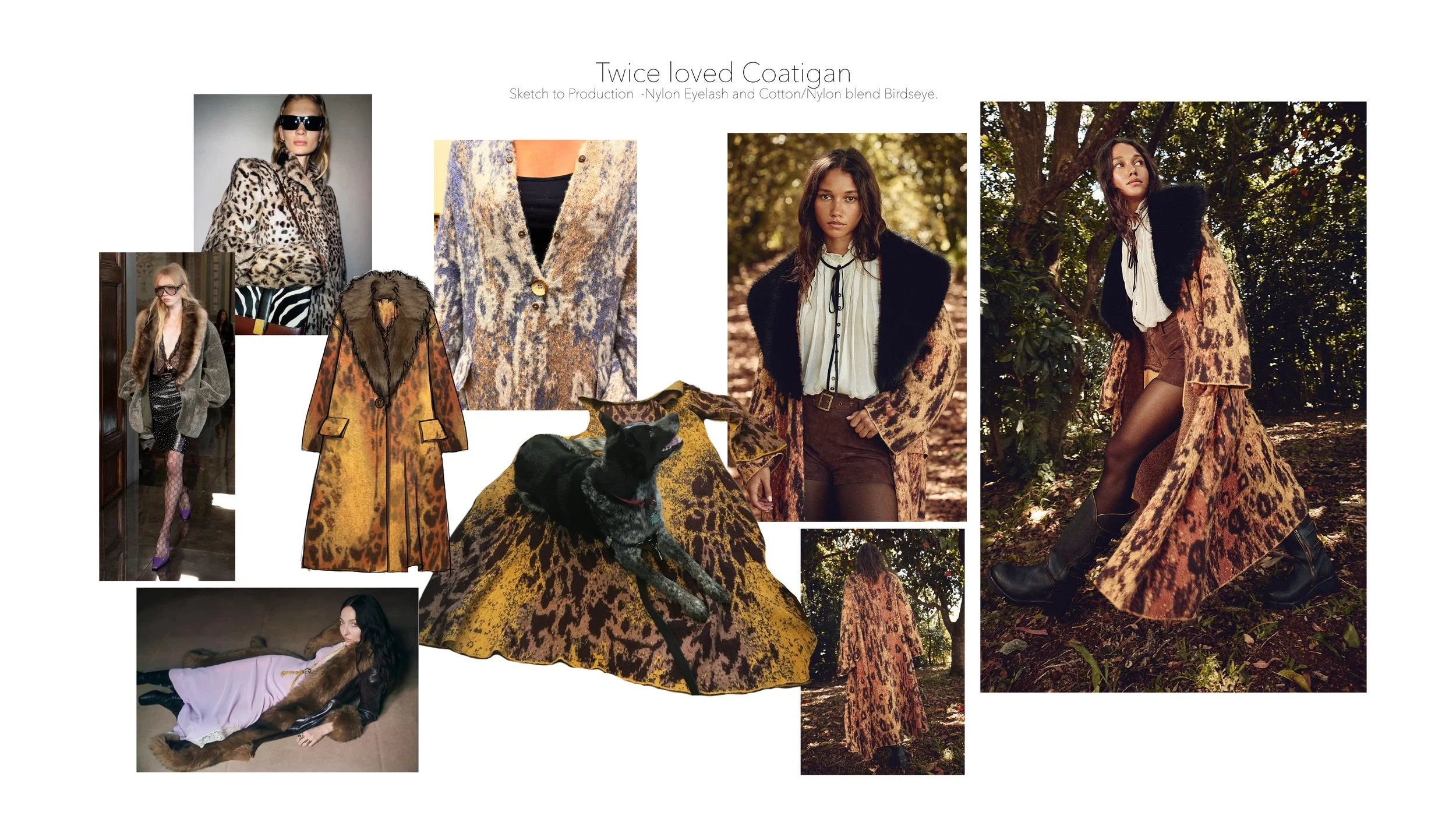 The Twice Loved Coatigan - I developed from a vintage garment I picked up in Milan, reworking the pattern, yarn, silhouette and adding the fur collar to complement current trends.