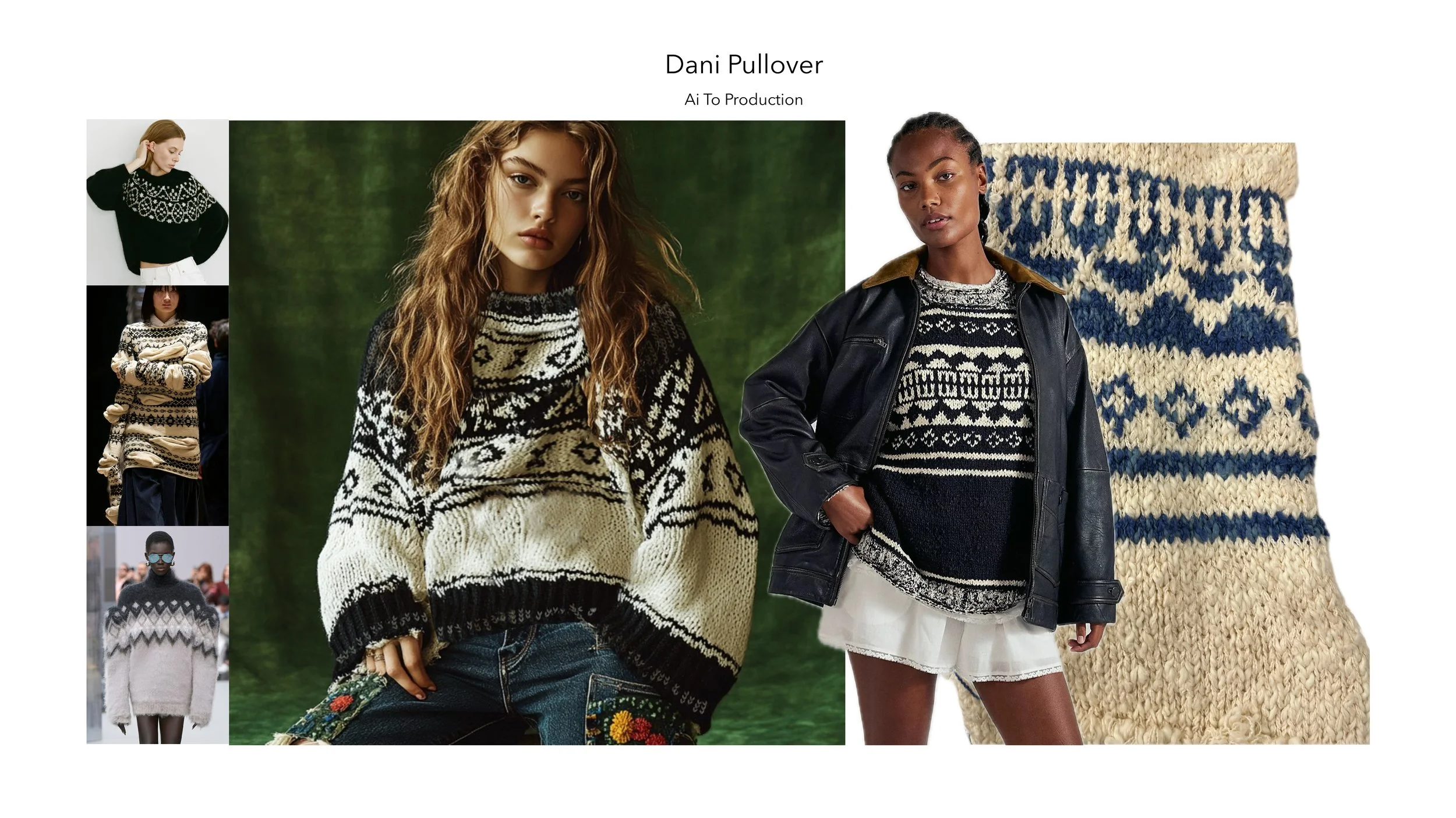 Using cashmere plaited with nylon I developed a structured fabric with stretch - The initial AI render was used as inspiration to develop the final layering style that comes in solids and stripes